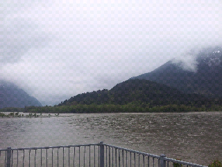 I left my gracious host's house at around 8:30 AM after breakfast, packing, and many thanks. As I left town I tried to snap a few pictures since I wasnt able to on my way in since my phone had died. It was too foggy to see the full scope of the mountains hugging the town. Everywhere you go in Hope there are wooden carvings of bears and signs with bear related logos. It is as if the town decorator selected a "Bear Carnage" theme. With Manning Park coming up it practically shouts "You are going to be mauled by bears". Comforting.